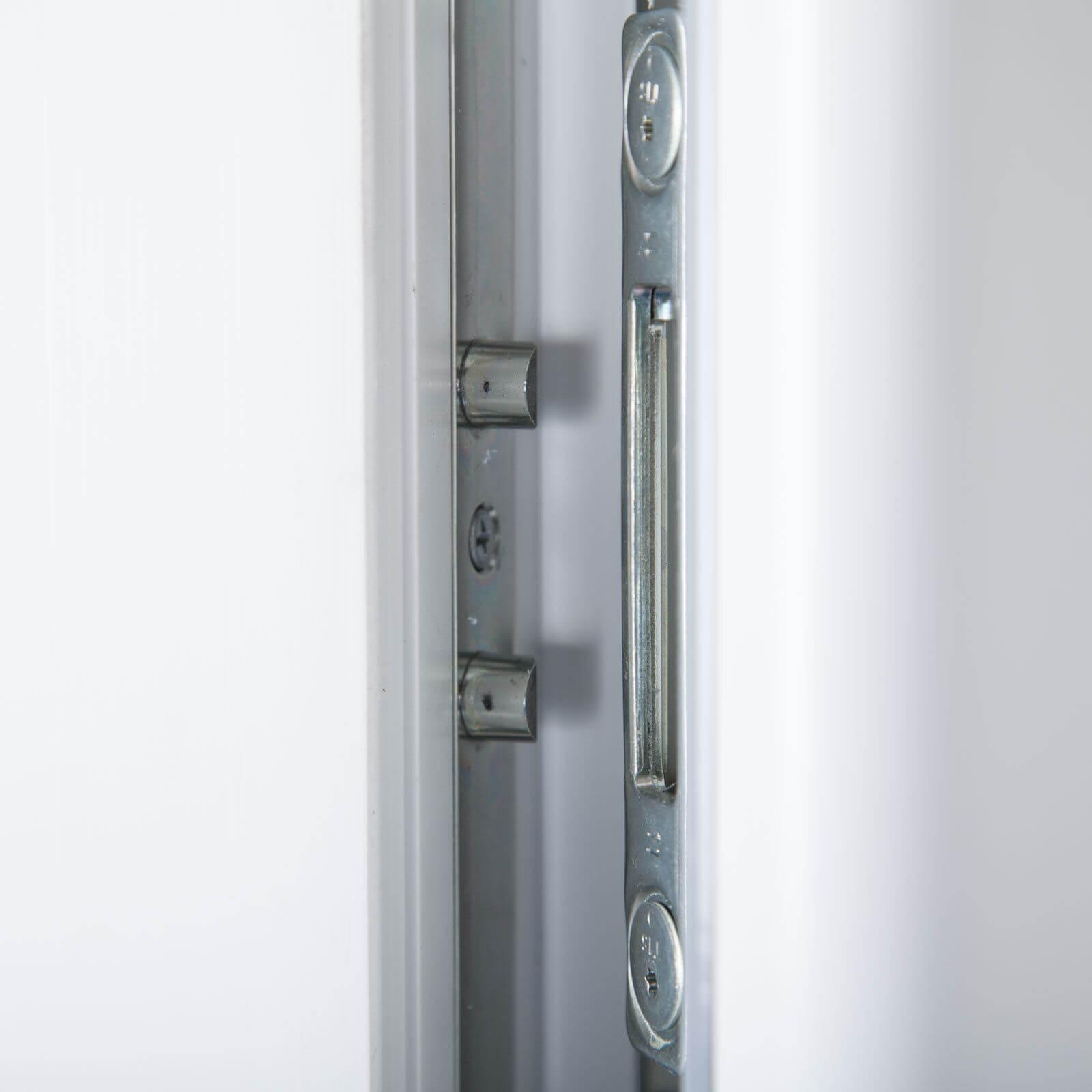 | Aufbau Türflügel | Türflügel mit beidseitiger Einsatzfüllung, umlaufende Stahlverstärkung im Inneren des Füllungsrahmen, 24 mm wärmegedämmte PVC-Sandwichfüllung (hochwertiger XPS-Kern) |